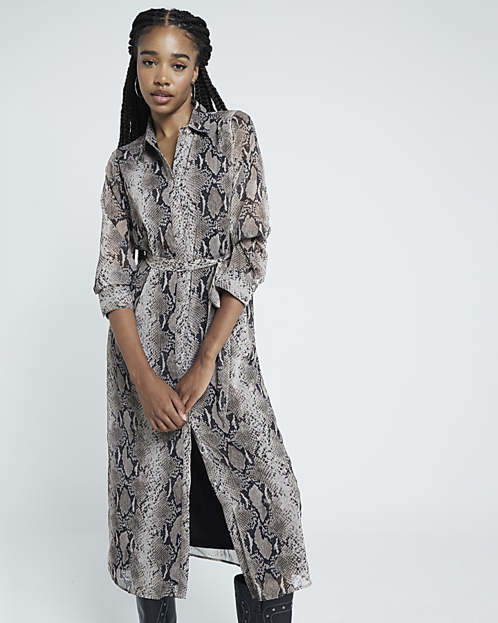 Black Snake Print Midi Shirt Dress River Island Very well made.