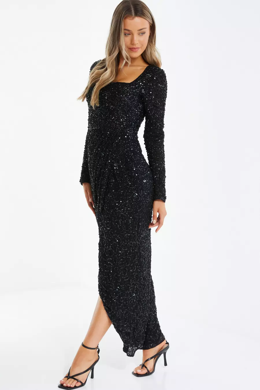 Black Sequin Wrap Maxi Dress QUIZ Clothing Very well made.