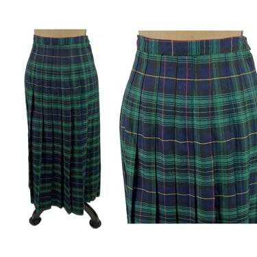 Vintage 80s 90s Blue Green Plaid Skirt Size M by KGR Very well made.
