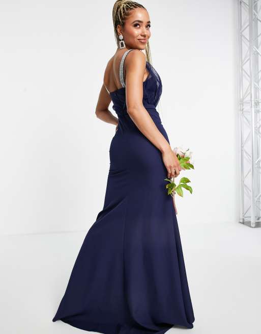 Missguided Bridesmaid bandeau gown with organza detail in navy ASOS Very well made.