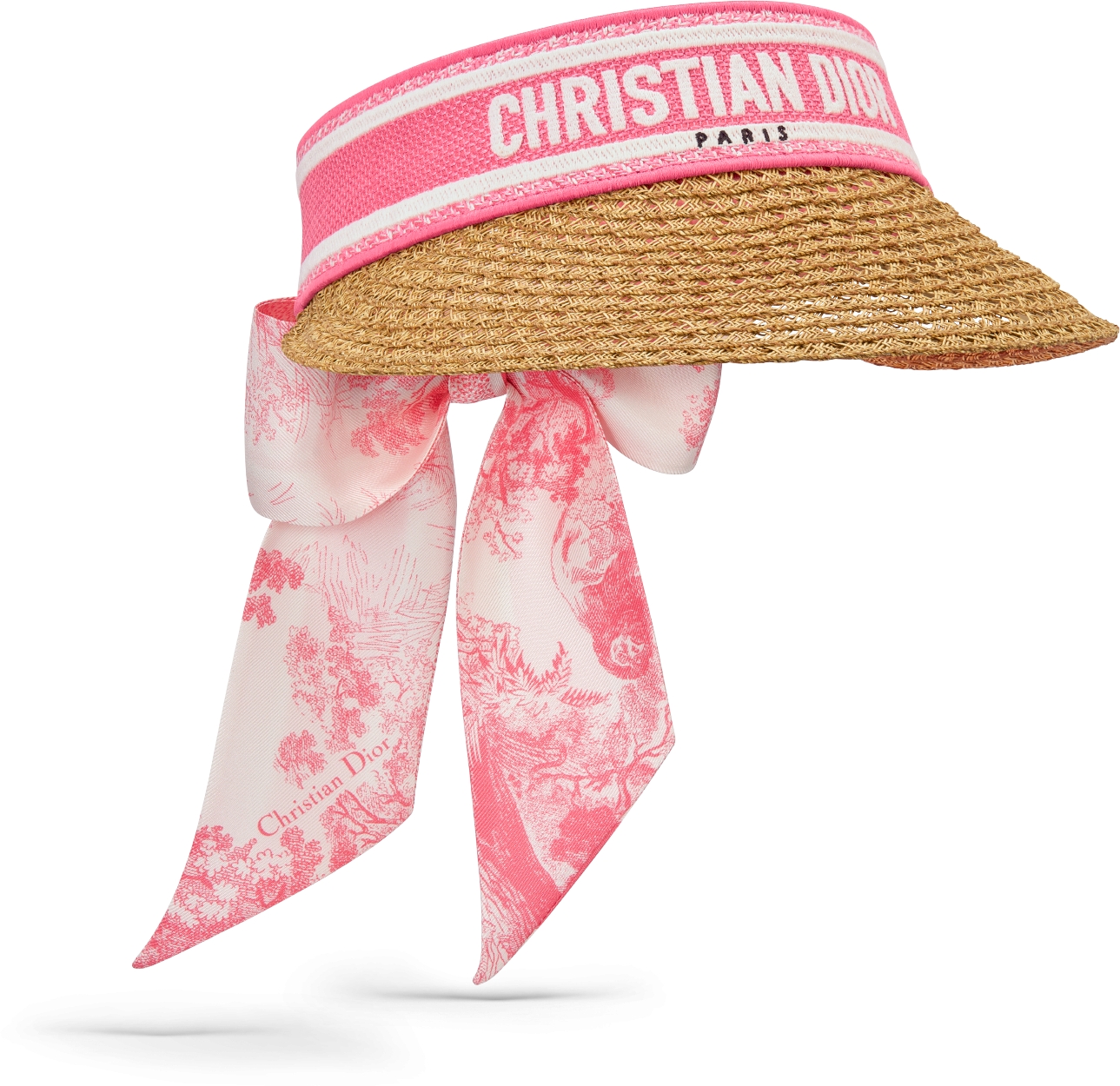 DIOR Dioriviera D Ocean Visor With Mitzah Straw With Candy Pink And White Embroidered Band Women Very well made.