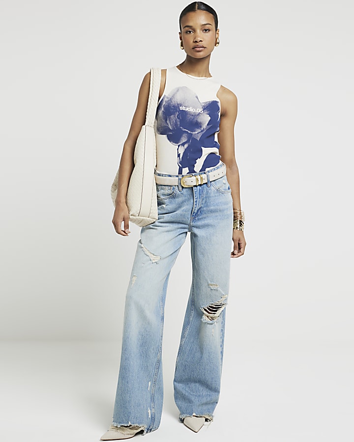 Tamari Tie Detail Mesh Vest Top in Diffused Floral Navy Very well made.