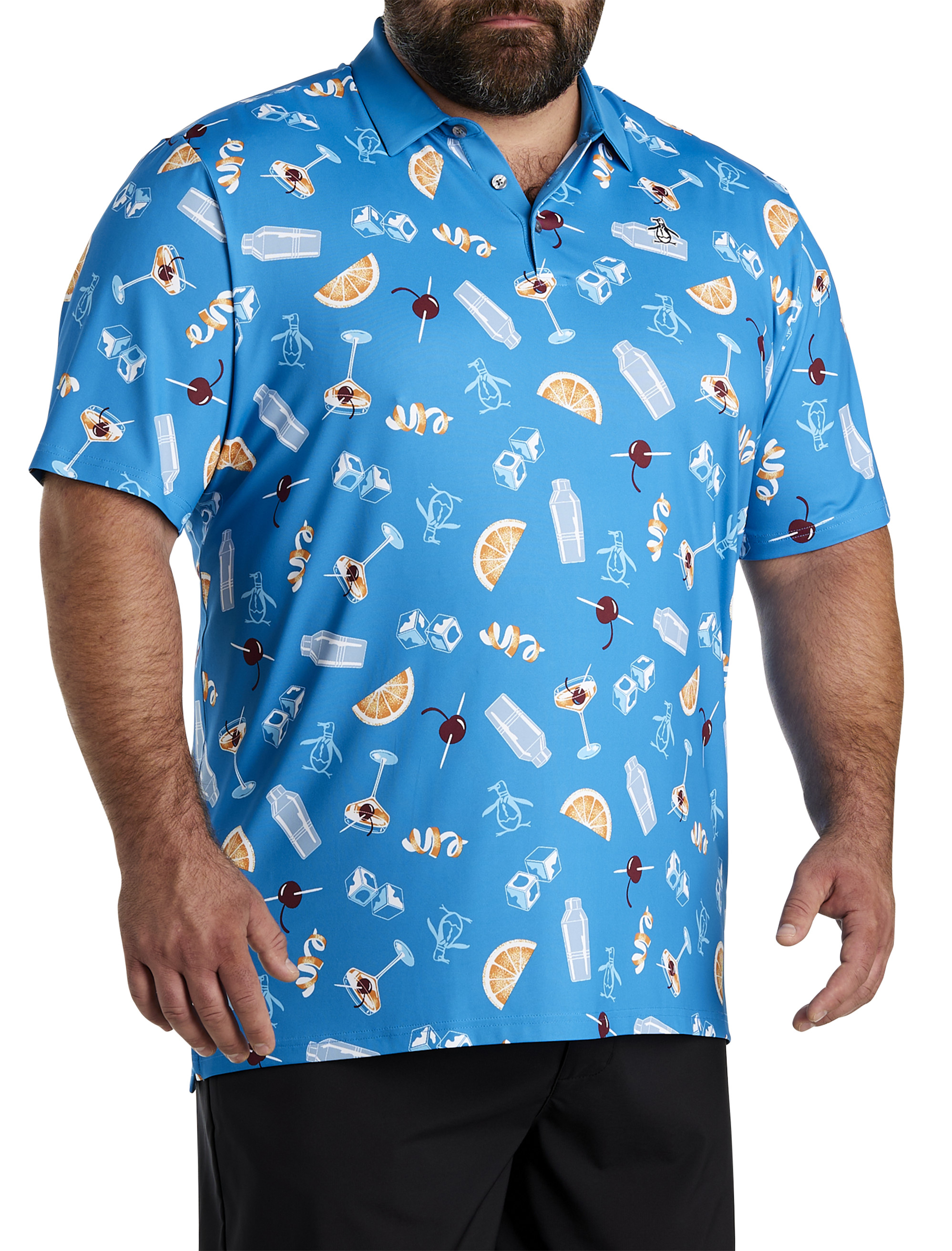 Original Penguin Men s Big Tall Oversized Cocktail Printed Golf Polo Shirt Blue Polo Shirts Very well made.