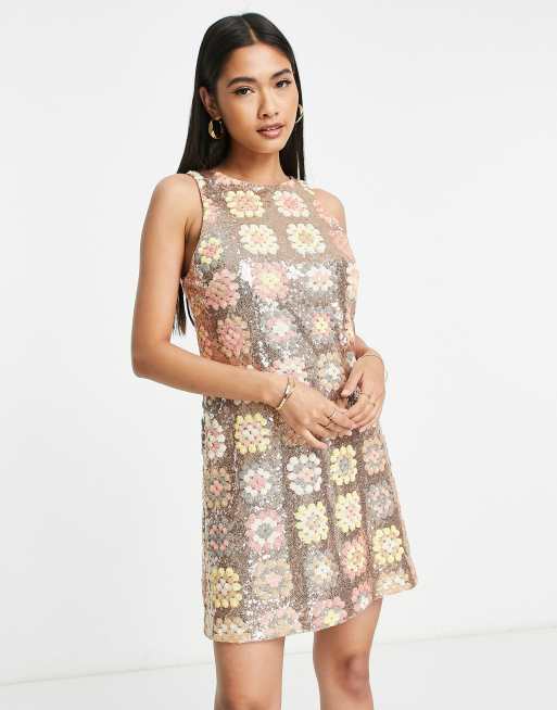 Other Stories Robe courte fluide retro sans manches a motif patchwork orne de sequins Very well made.