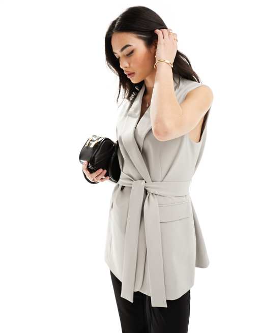 ASOS DESIGN sleeveless tailored blazer with tie waist in light gray ASOS Very well made.
