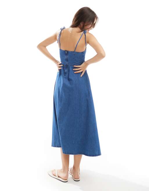 ASOS DESIGN DECONSTRUCTED denim deconstructed bandeau midi dress in midwash blue Very well made.