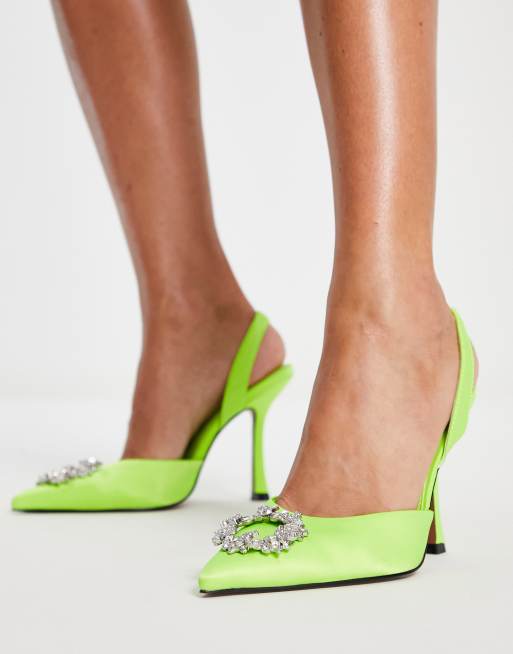 ASOS DESIGN Poppy embellished slingback high heeled shoes in lime Very well made.