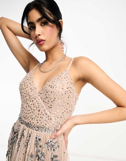 Maya Bridesmaid wrap front maxi tulle dress with tonal delicate sequin in taupe blush co ord ASOS Very well made.