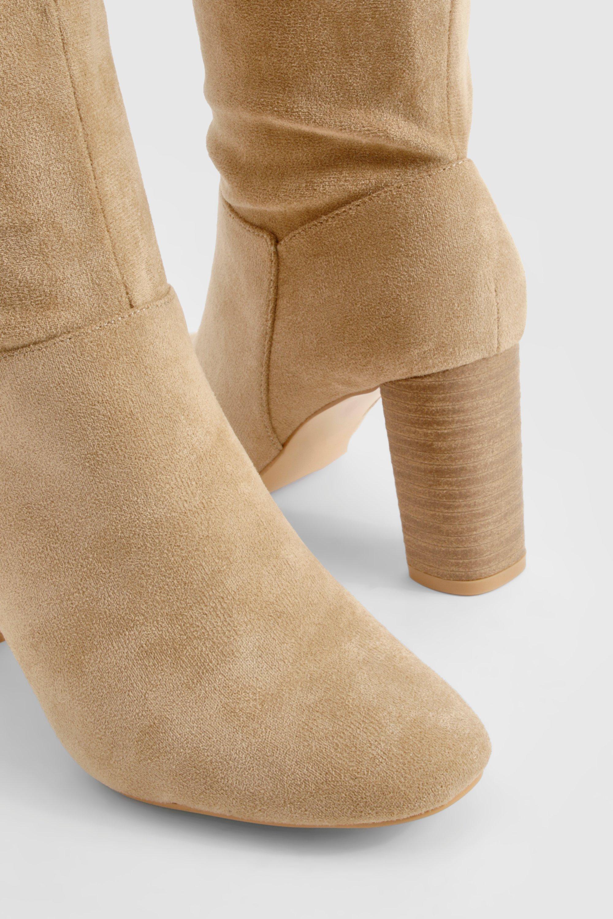 Boohoo Women s Block Wooden Heel Faux Suede Knee High Boots Beige Very well made.